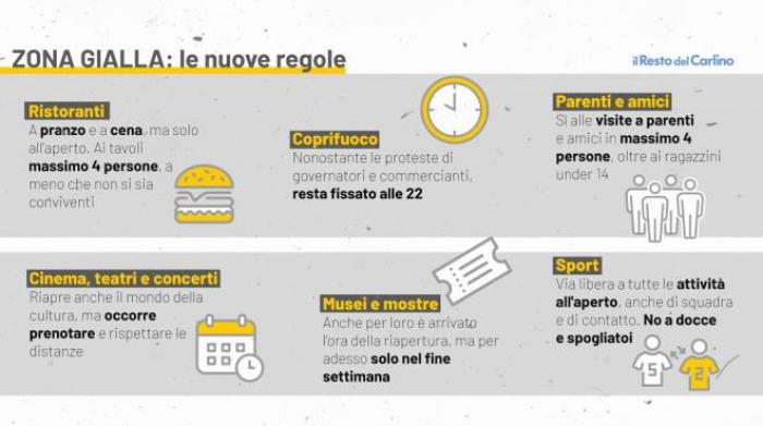 La reazione di Sgarbi. In zona gialla i ristoranti sono aperti anche al chiuso resta sempre consentito il servizio di asporto e la consegna a domicilio. In zona gialla i dispositivi di protezione delle vie respiratorie meglio conosciuti come mascherine devono essere obbligatoriamente indossati in tutti i luoghi al chiuso diversi dalla propria abitazione compresi i mezzi di trasporto pubblico aerei treni autobus e in tutti i luoghi allaperto. Possibile passaggio già da lunedì.